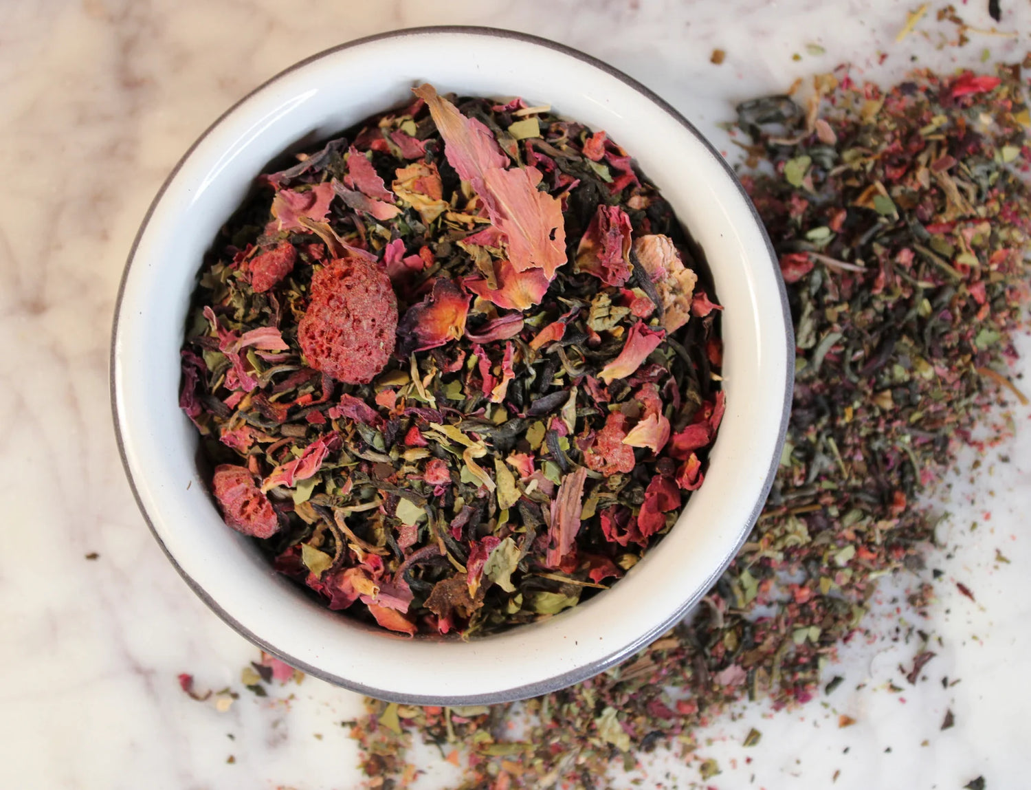 Our Happy Vibes Tea is a wonderful, minty tea with medicinal herbs known for their ability to promote mood improvement and aid energy levels.